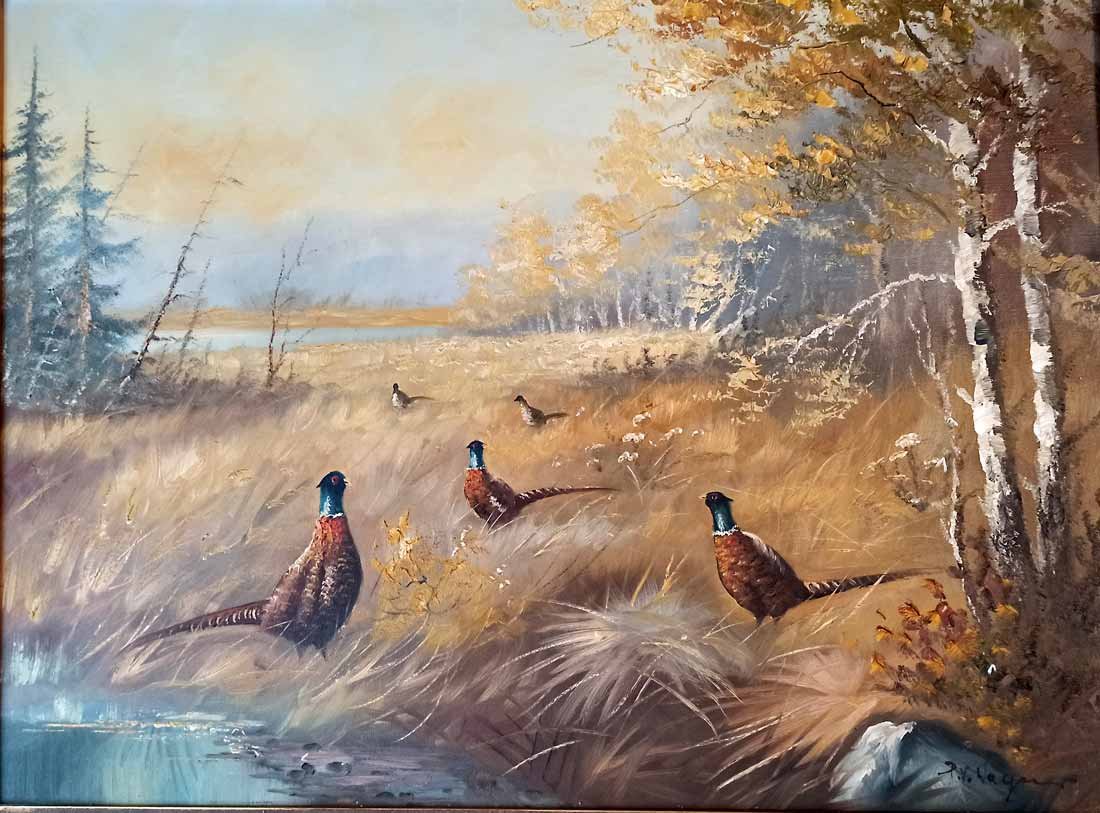 P. v. Wagner, "Landschaft mit Fasanen", Öl Lwd. H. x B. 75 x 95 cm