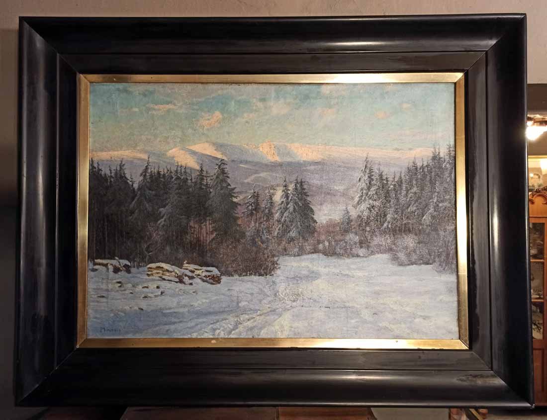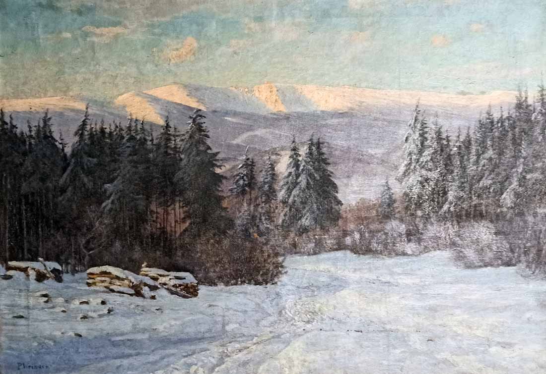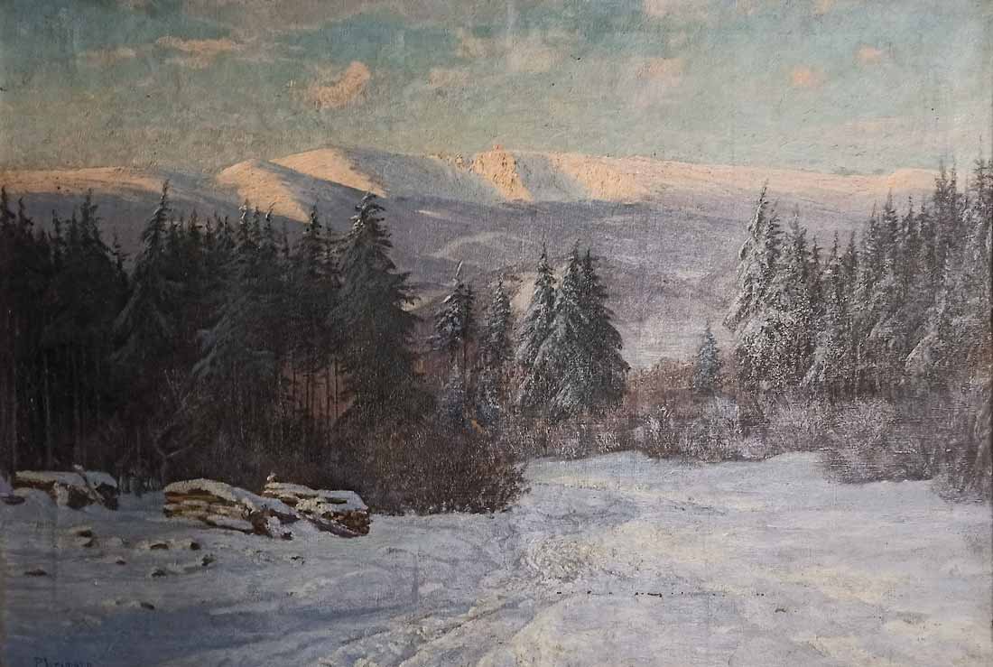 "Winter im Riesengebirge". Weimann lebte und arbeitete bevorzugt dort. Er schuf ein großes Oeuvre, immer wieder mit sagenhaftem Lichtspiel von Wintersonne auf Schnee, welches ihn lebenslang faszinierte.