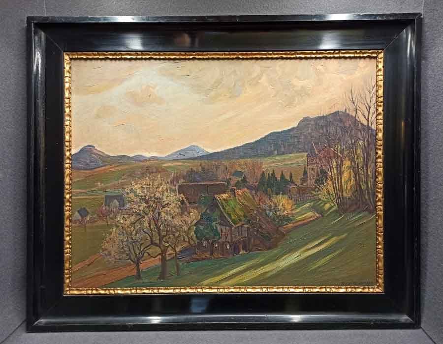 Rudolf Poeschmann, "Lückendorf im Sonnenuntergang", Öl auf Lwd. Re.u. signiert: Rud. Poeschmann Dresden.