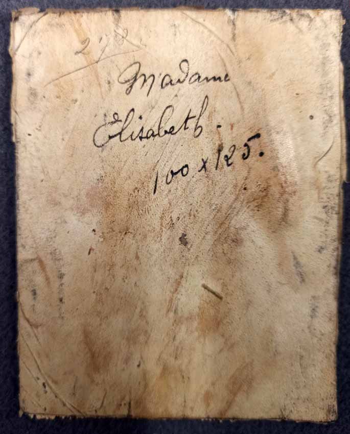 Seitl. re. unleserlich signiert, Rs. mit Leder bezogen und bezeichnet "Madame Elisabeth".