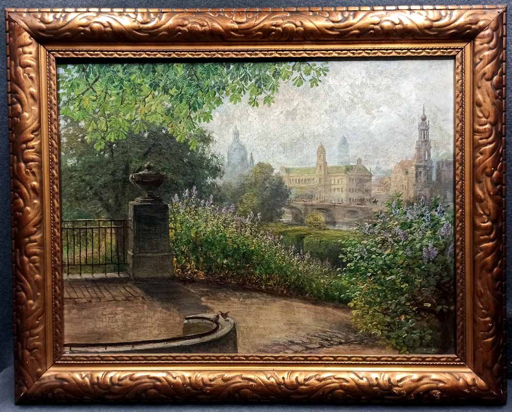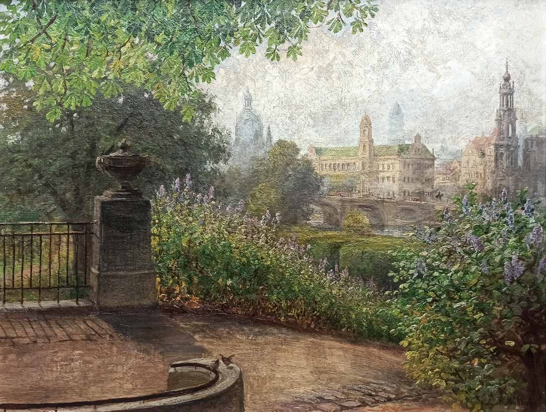 Mühlig, Albert E. Blick über die Elbe zur Hofkirche, Öl/Lwd.