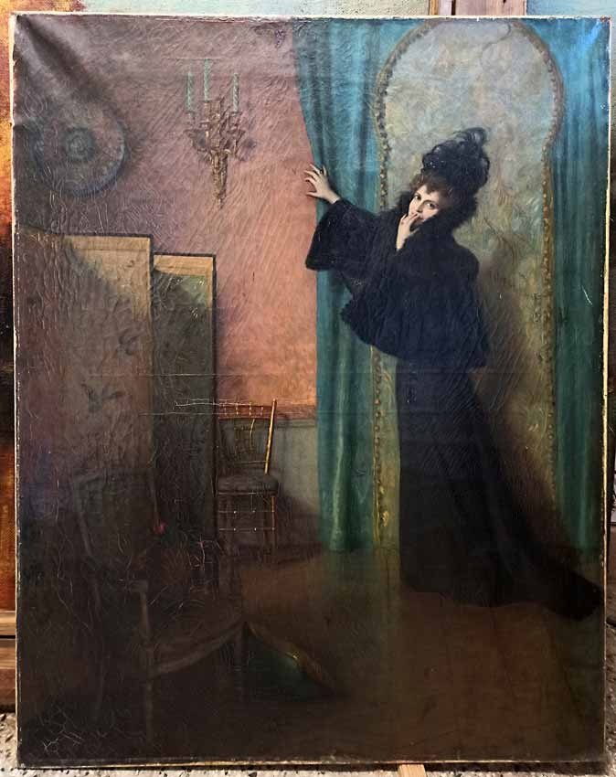 Charles Auguste Corbineau, 1835-1901; "Dame im Salon". Öl/Lwd. sign. unten links. Unrest. Rahmen vorhanden, ebenfalls unrest.