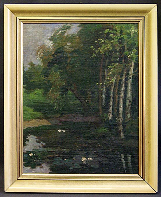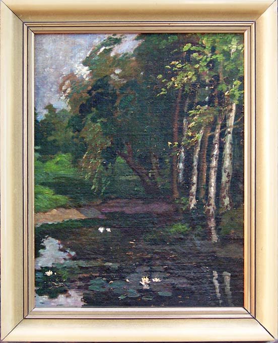 Seerosenteich in Warnemünde; Öl- Lwd., B. 39 cm x H. 51 cm (R. 49,5 x 61.5 cm);
