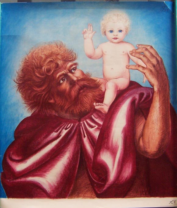 Dix malte sechs Versionen des Christopherus. Christopherus war der riesenhafte Heilige, der das Jesuskind, durch einen Fluss trug. Das Kind wurde immer schwerer und eine kaum noch aushaltbare Last.
