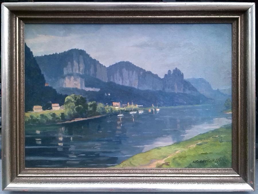 Sächsische Schweiz, Öl a. Malpappe, sign. Alfred Winkler.