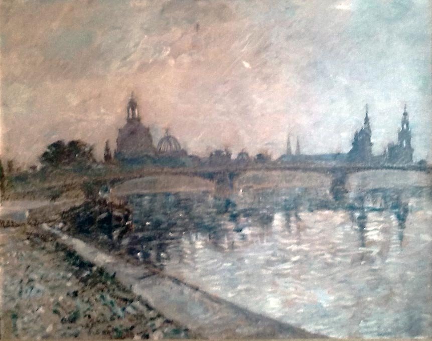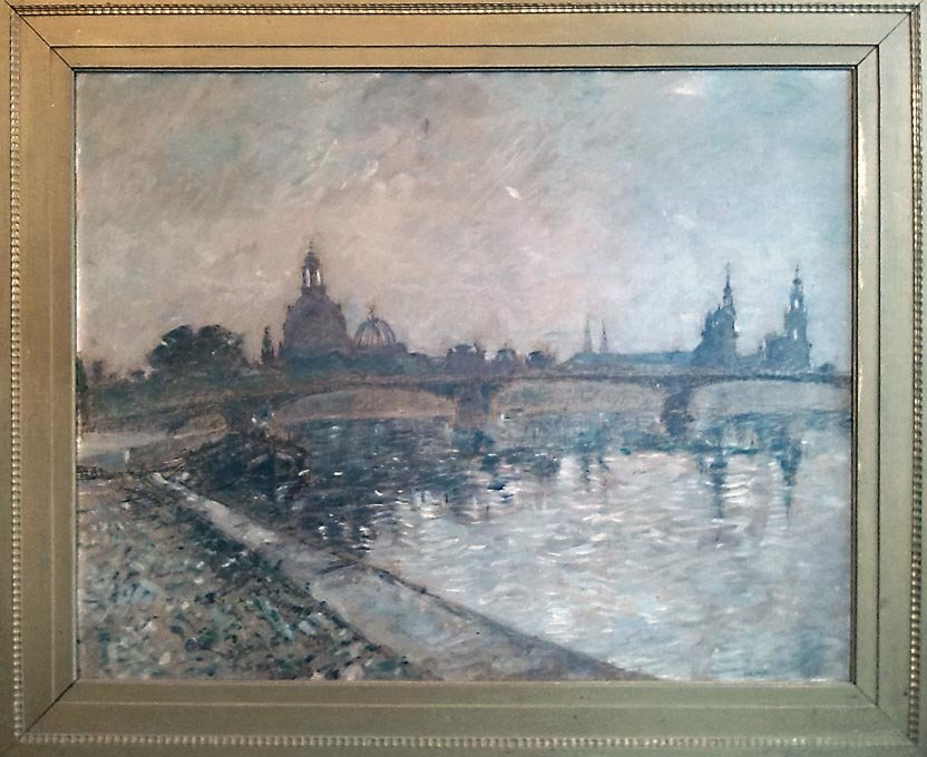 Ansicht von Dresden mit Frauenkirche, Prof Georg Siebert, Öl auf Malpappe. Siehe Wikipedia
