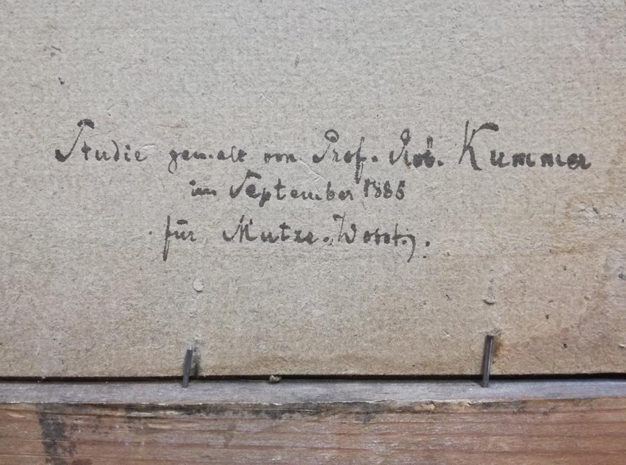 RS bezeichent: "Studie gemalt von Prof. Rob. Kummer im September1885 für ??Mutze..?? Wo..??"