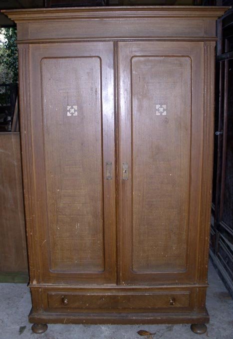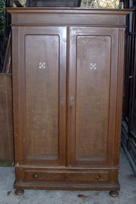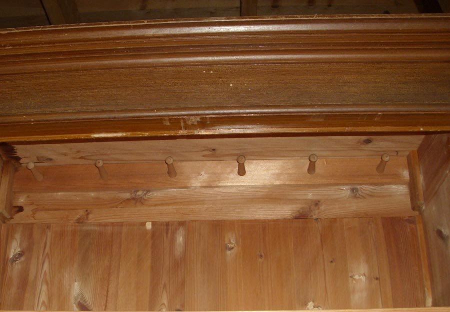 Kleiderschrank um 1910, Weichholz unrestauriert. Guter Originalzustand mit Gebrauchsspuren. Verstellbare Einlegebretter.