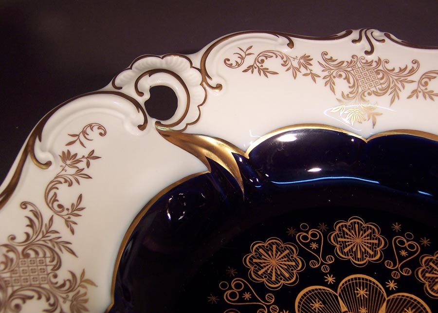Große Schale Kobaltblau und Gold. Weimar Porzellan, Thüringen.