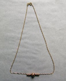 Halskette 333 Gold, in sich gedreht und mit einer großen (D. ca 7 mm) und 6 kleinen (D.ca 3-4 mm) Kugeln.Kettenlänge 45 cm. Guter gepflegter Zustand. Gestempelt "333".