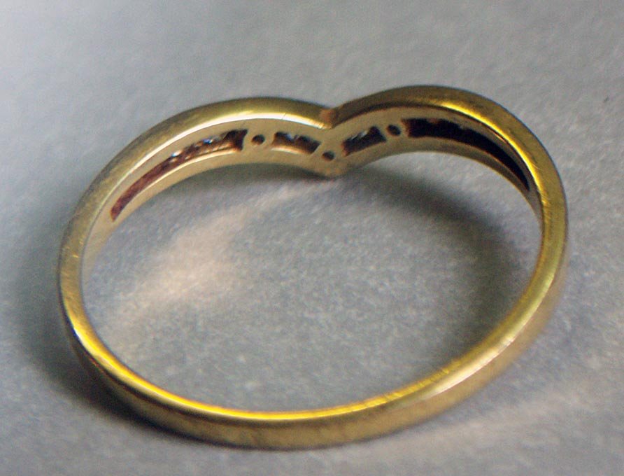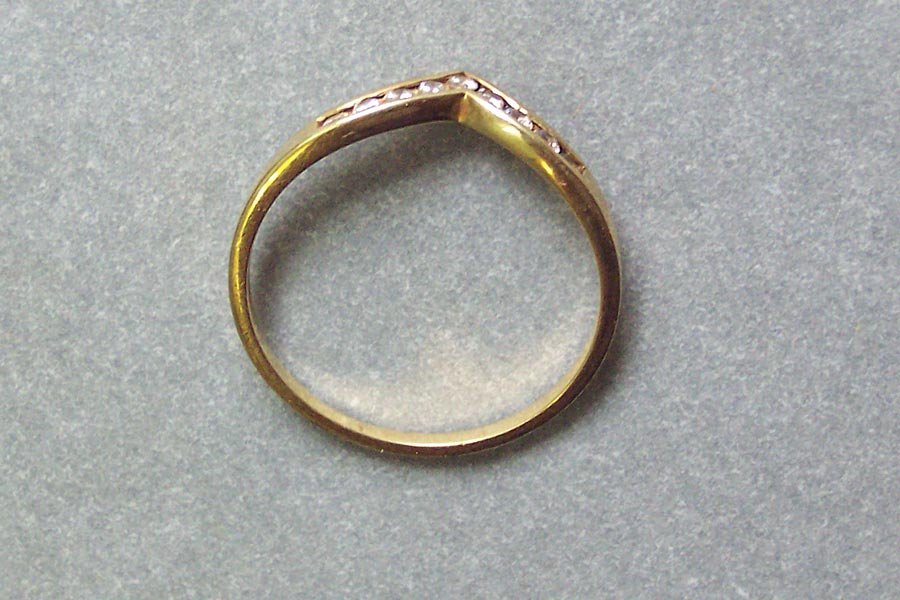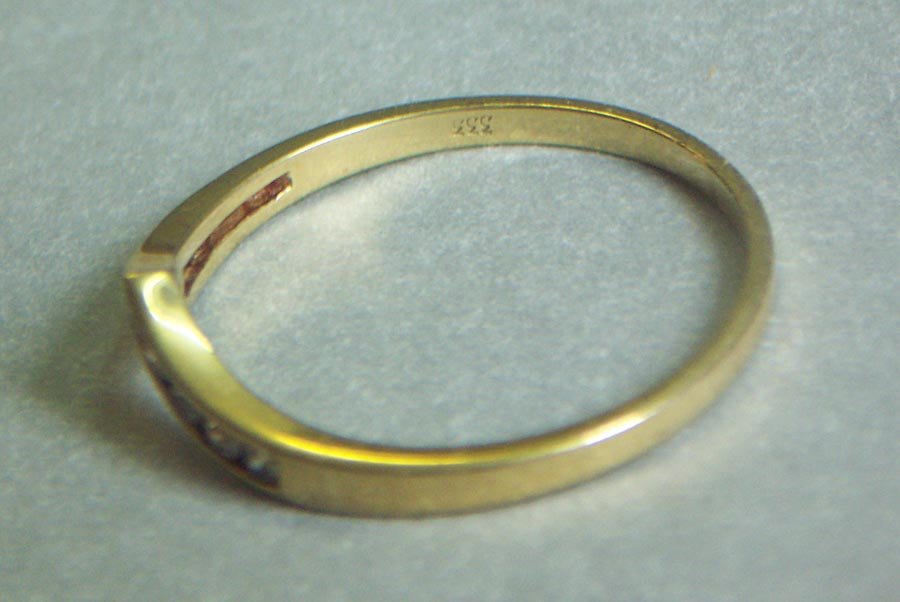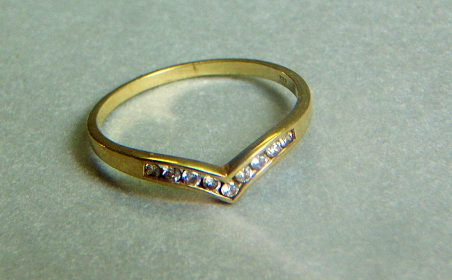 Goldener Ring mit 9 kleinen Steinen. Diese farblos, transparent; geschliffen.