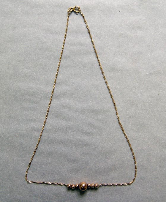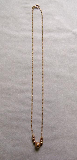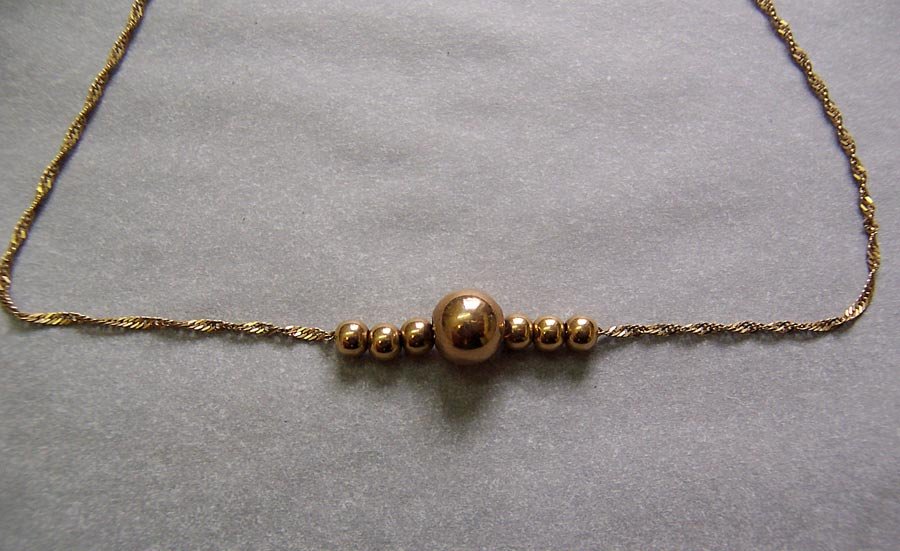Halskette 333 Gold, in sich gedreht und mit einer großen (D. ca 7 mm) und 6 kleinen (D.ca 3-4 mm) Kugeln.