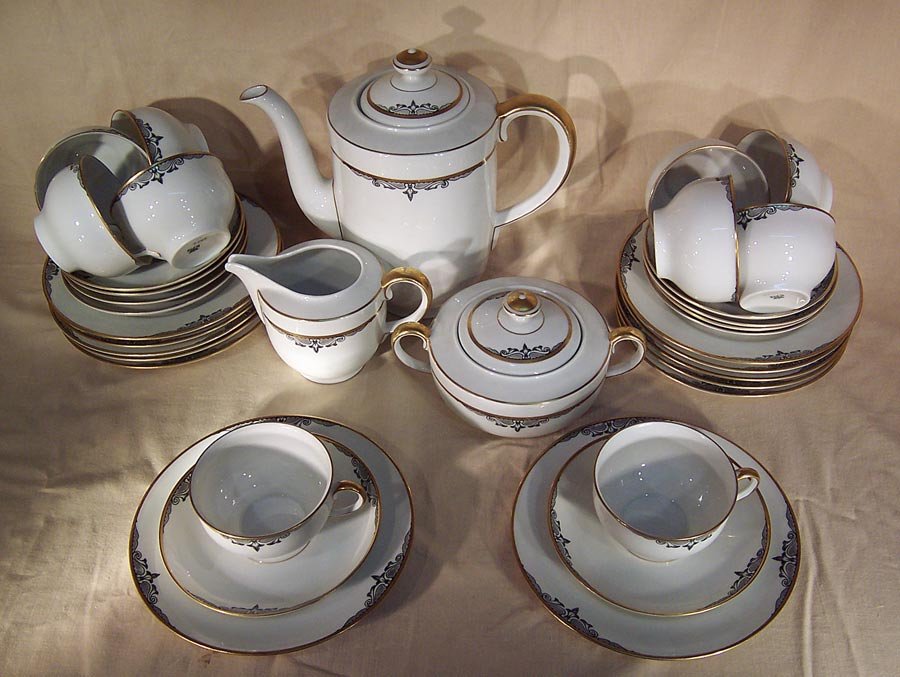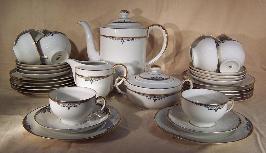 Das Porzellanservice ist in sehr gutem Zustand; ohne Beschädigungen oder Gebrauchsspuren.