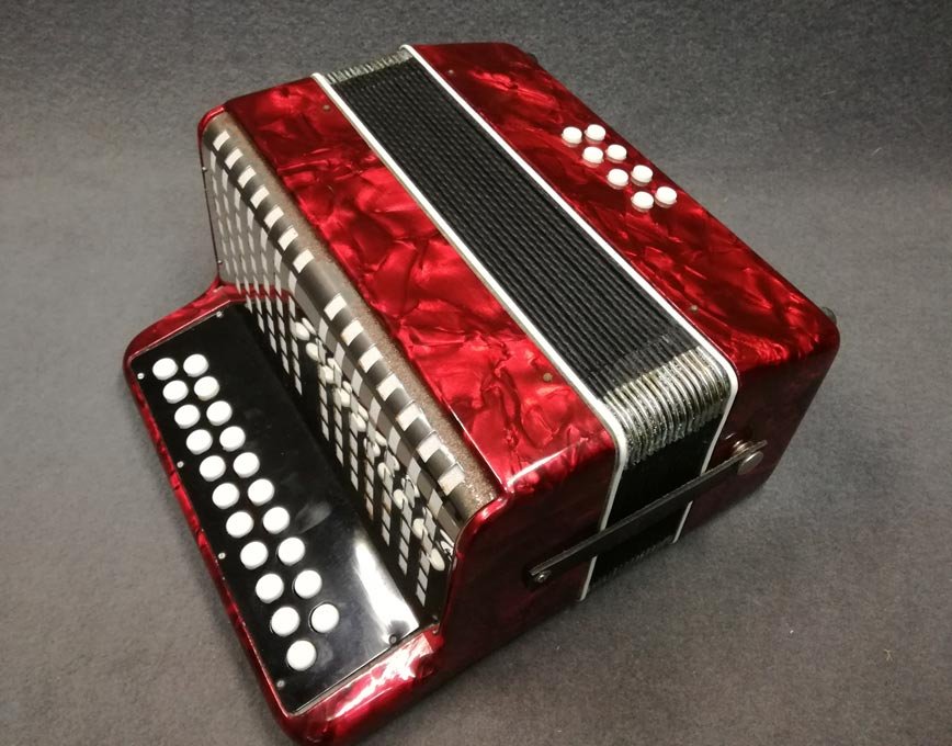 Guter Zustand. Alle Knöpfe mit Ton, der Balg sieht sehr gut aus und ist dicht. Zwei Knöpfe leichte klemmend. Vermtl. wenig bespielt.