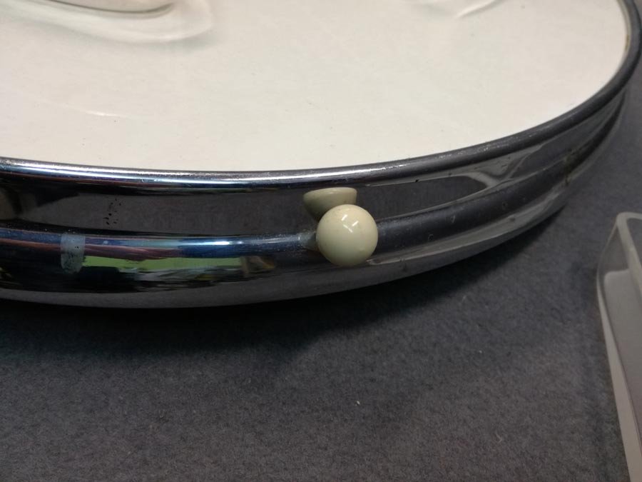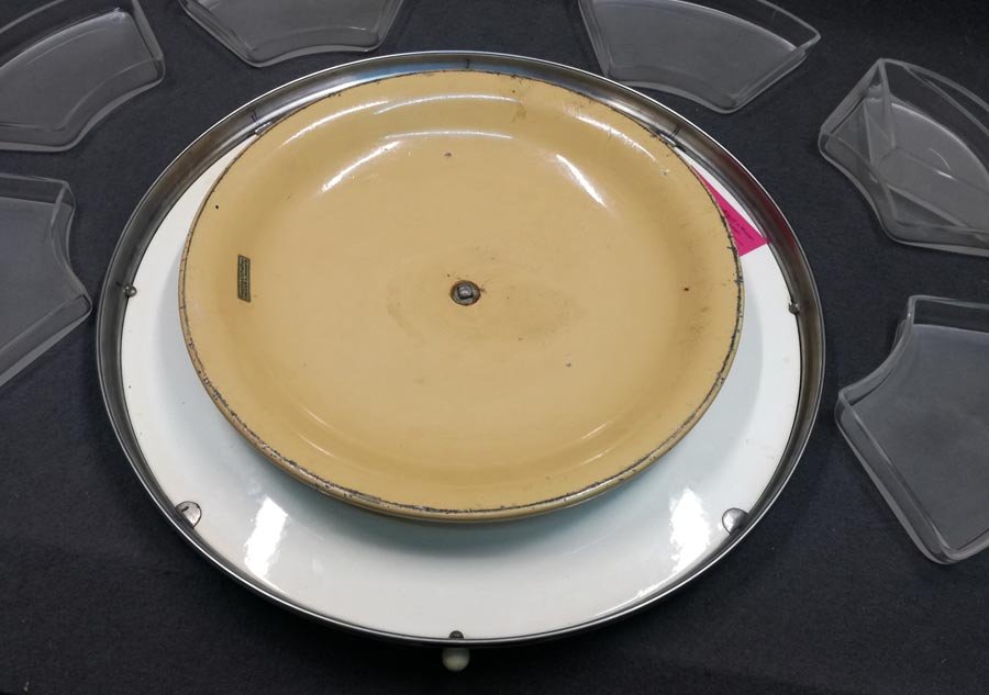 Alle Glasteile in Ordnung. Das Tablett sehr gut erhalten, dreht ohne Probleme.