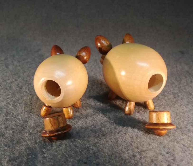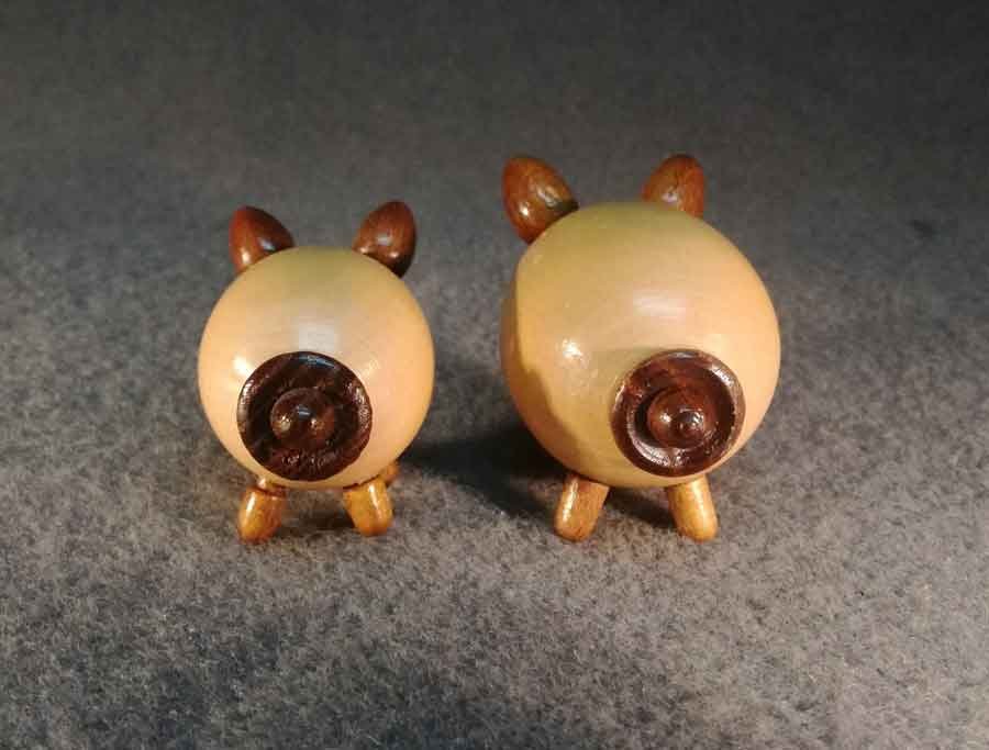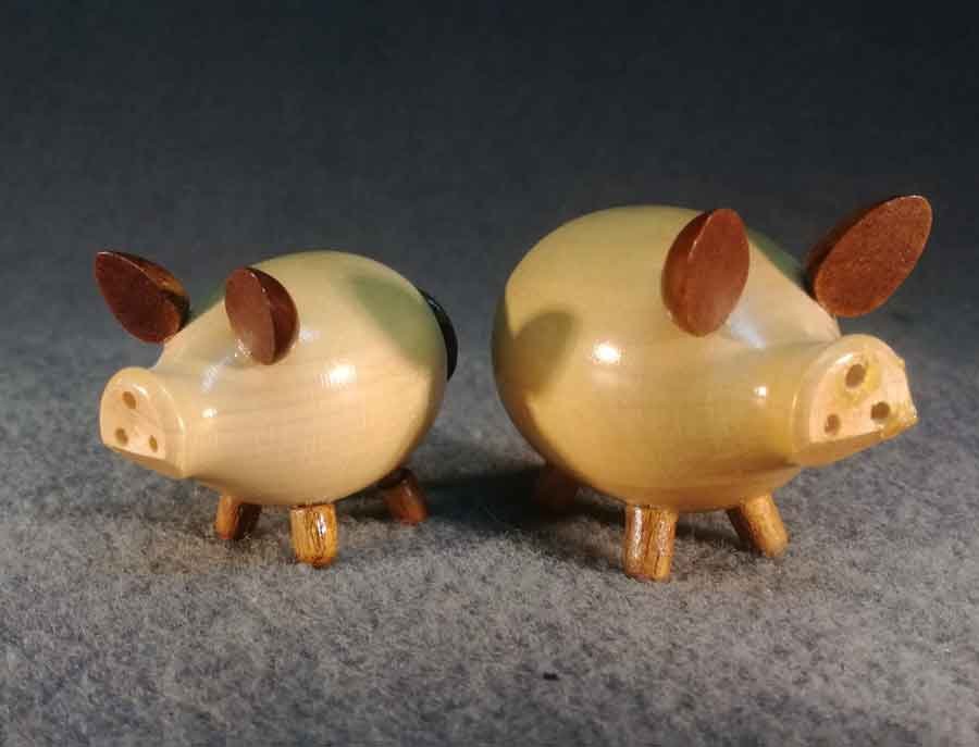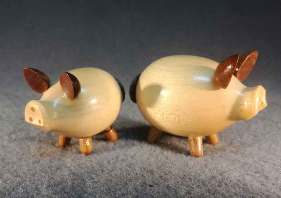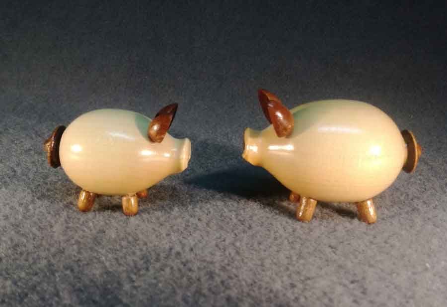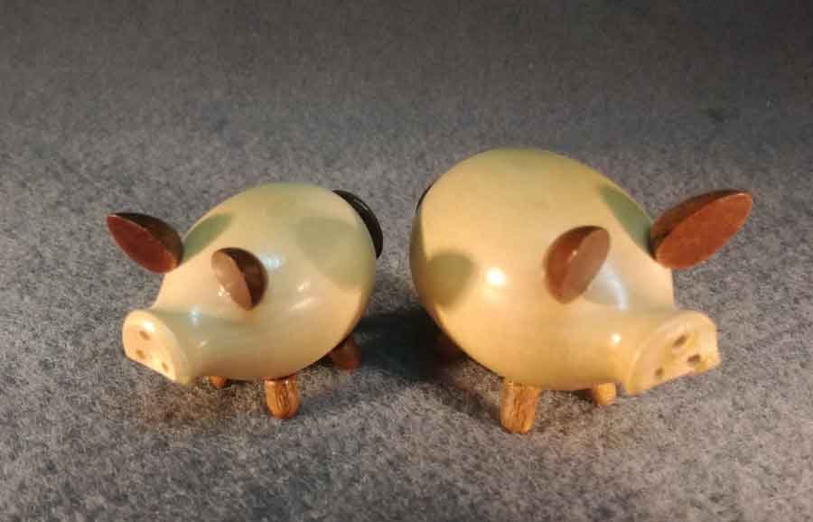 Salzstreuer und Pfefferstreuer als  Schweinchen aus Holz.