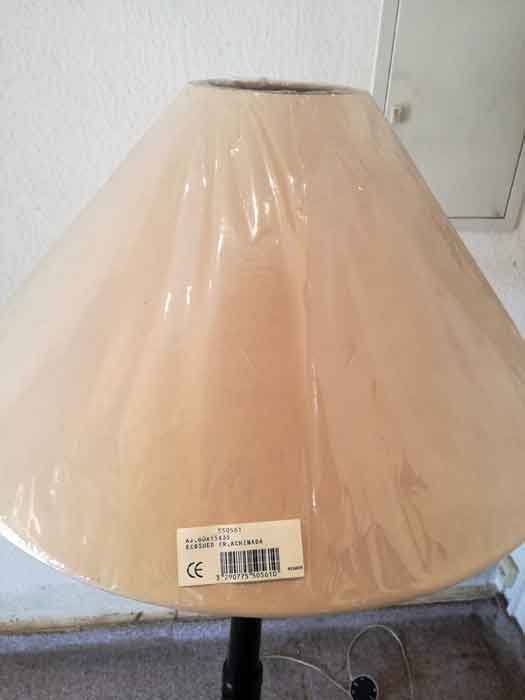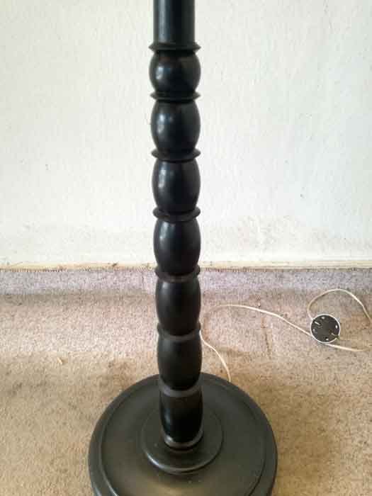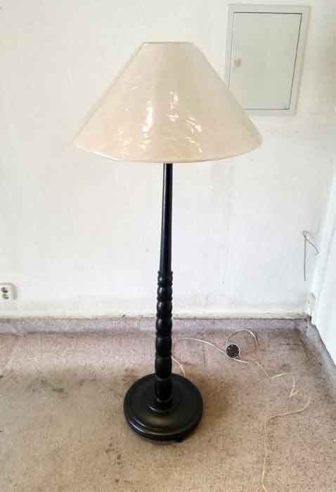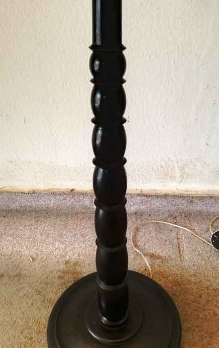 Stehlampe, schwarz. Dazu neuzeitlicher Schirm (muss noch angepasst werden).
