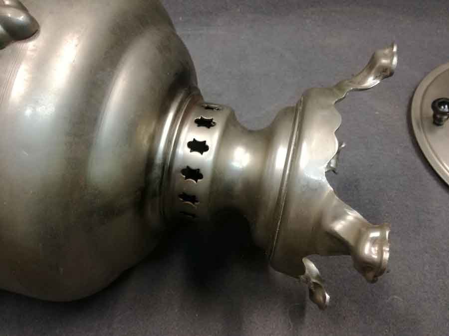 Sehr gut erhalten, vollständig und dicht. Mit schöner Obertflächenstruktur, fein ziselierte Wellen-Linien.