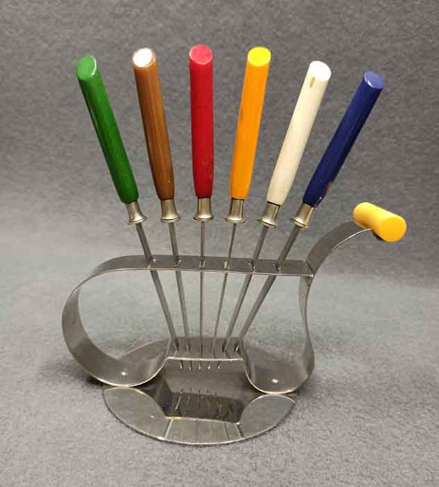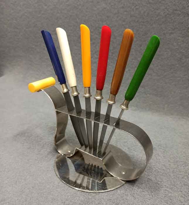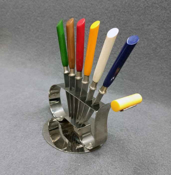 WMF; 6x Obstmesser in originalem Ständer. Art Deco um 1930.