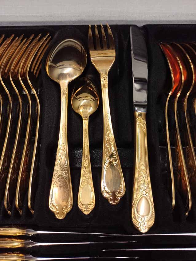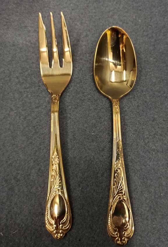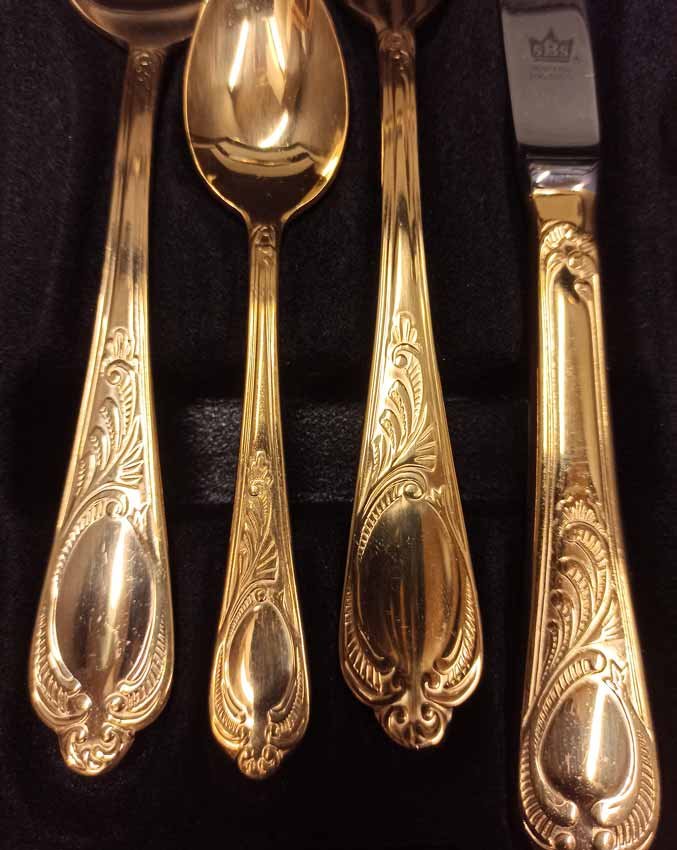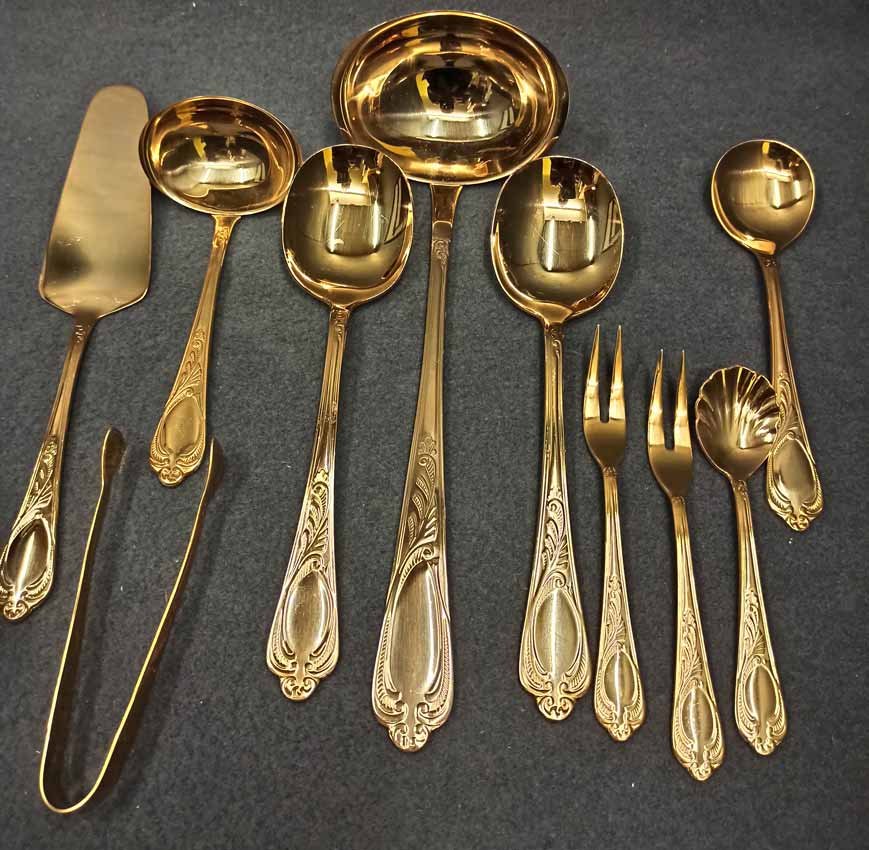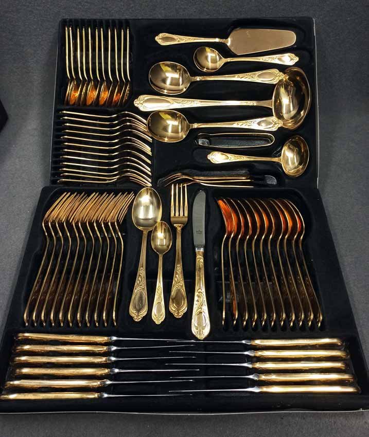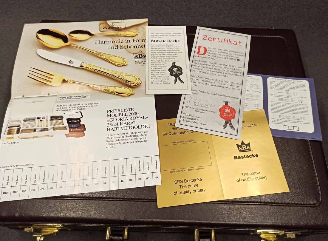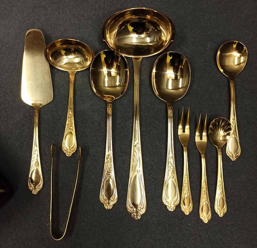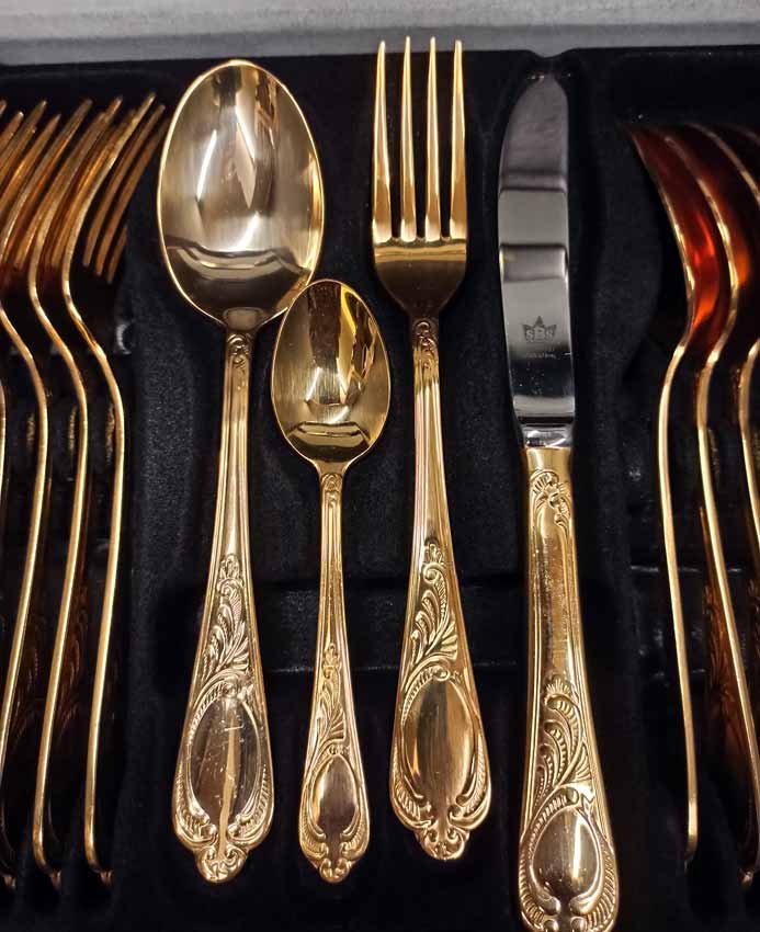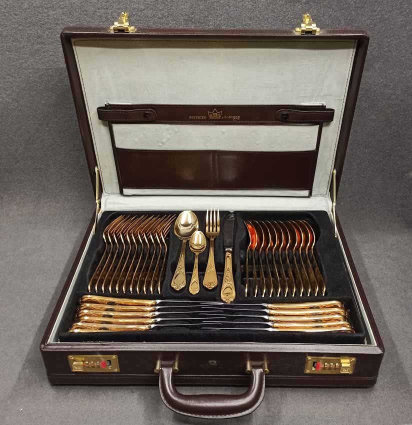 Besteck vergoldet 70 tlg. f. 12 Pers. 24 Karat,SBS Mod. ?Gloria Royal? neuwertig