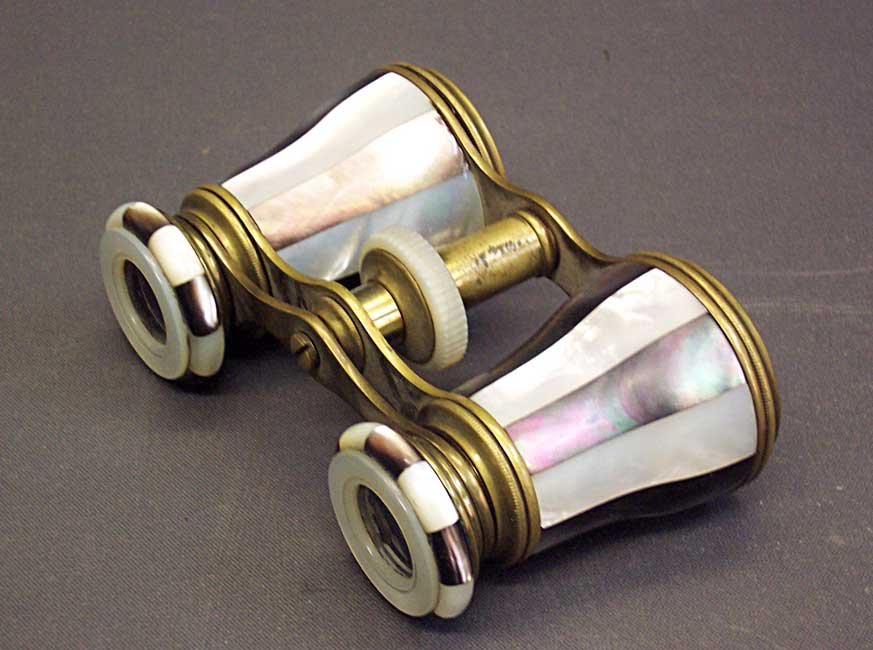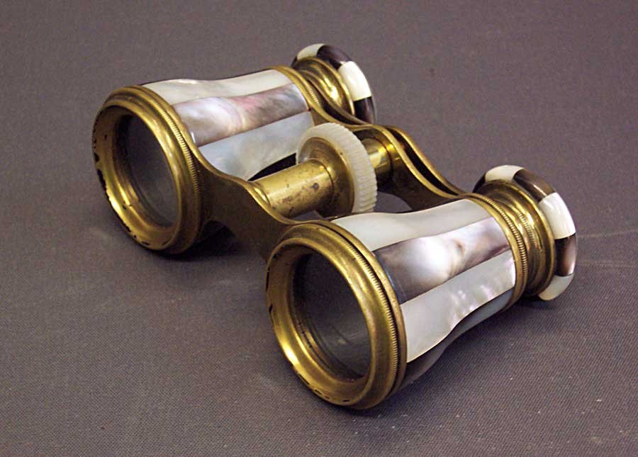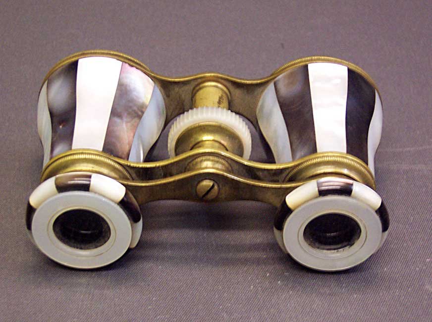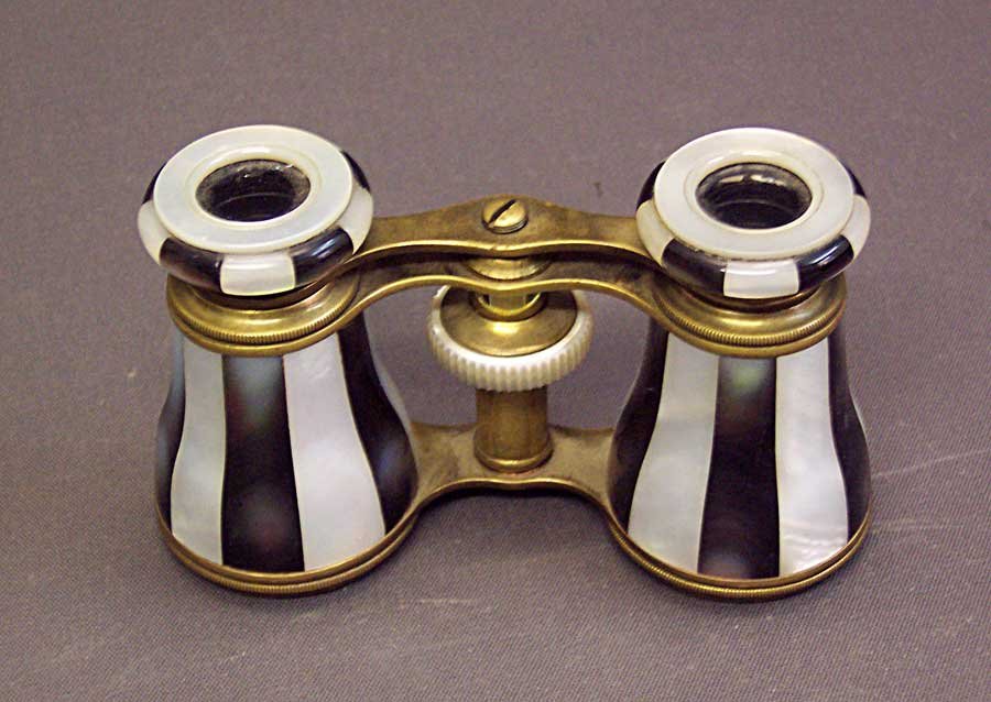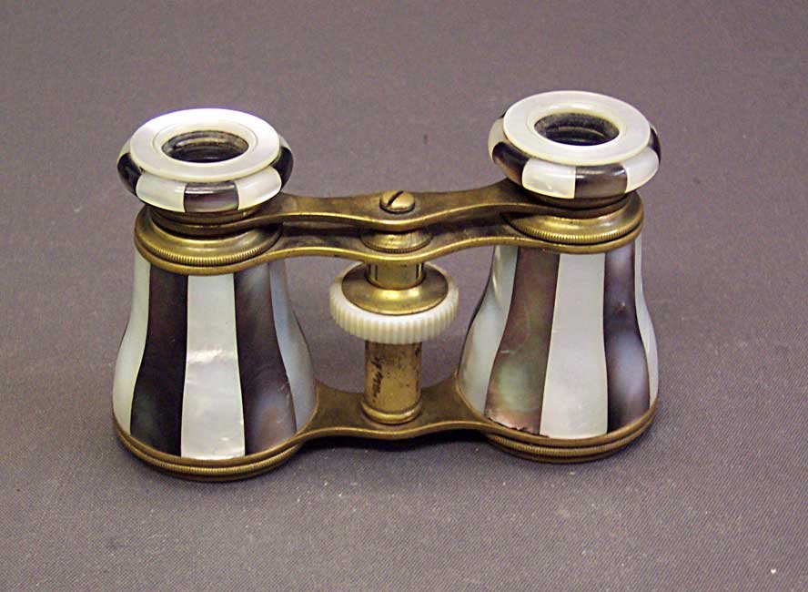Nicht mehr verfügbar!! Opernglas um 1900 mit Perlmuttauflagen. Selten; dunkles Perlmutt im Wechsel mit hell.