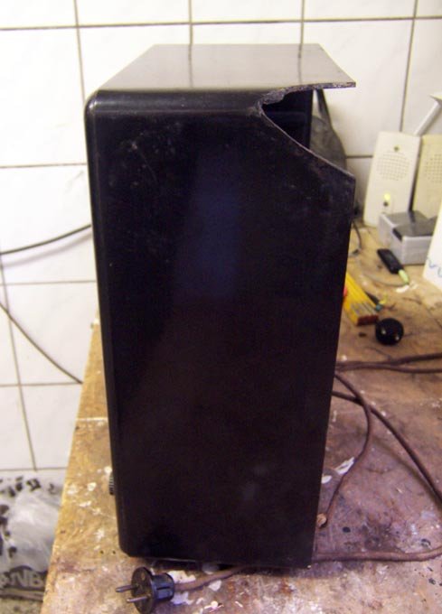 Das Innenleben scheint vollständig zu sein. Am Gehäuse eine Ecke defekt. Rückwand gebrochen. Funktion ungeprüft.