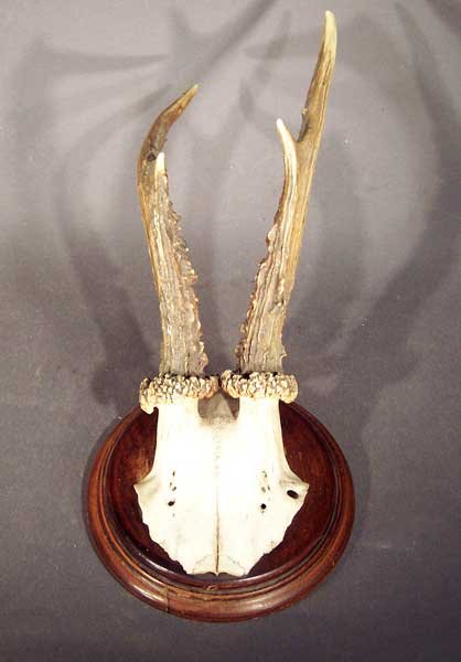Rehgeweih , montiertt auf Brett. L. ca 19 cm