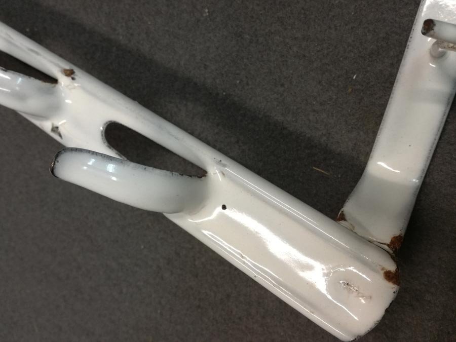 Emaille Topfdeckelhalter um 1900, alt weiß Shabby