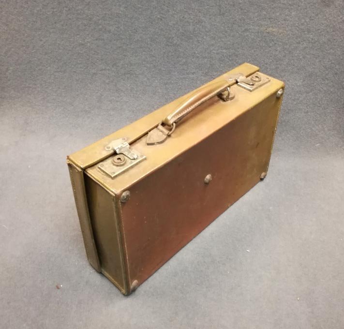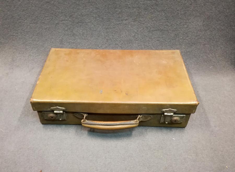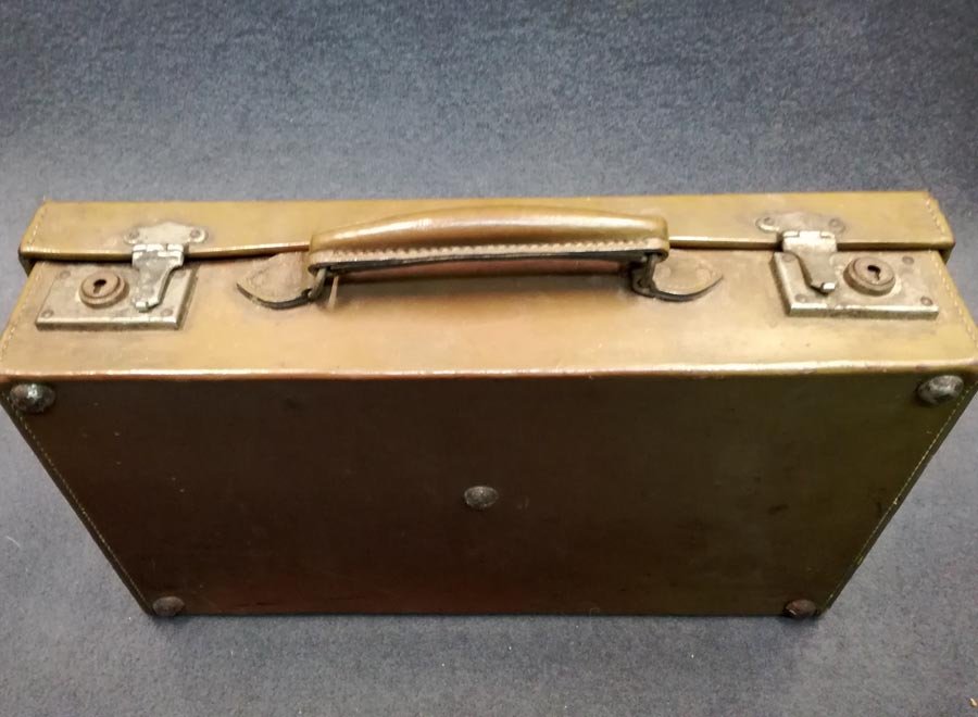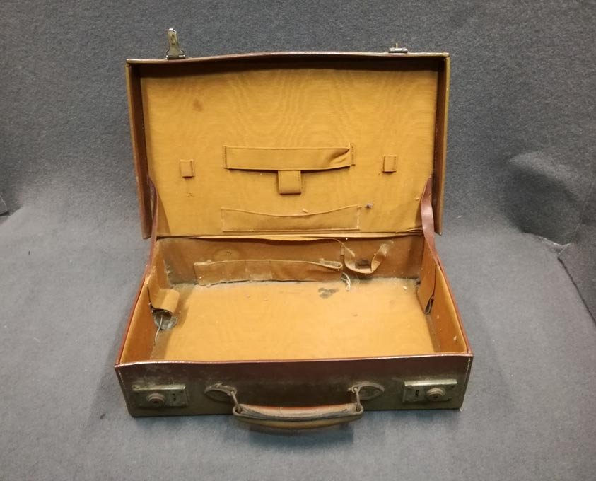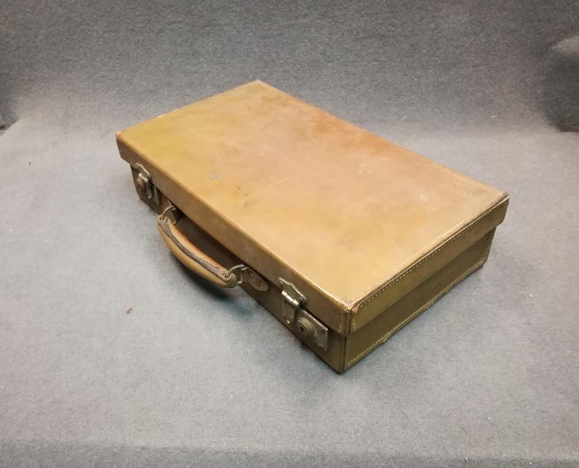 Lederkoffer, gut erhalten. Kleiner Koffer L/B/H 40 x 23 x 10 cm, verm. alter Kosmetikkoffer, Toilettenset . Innen etwas staubig. Fundzustand.