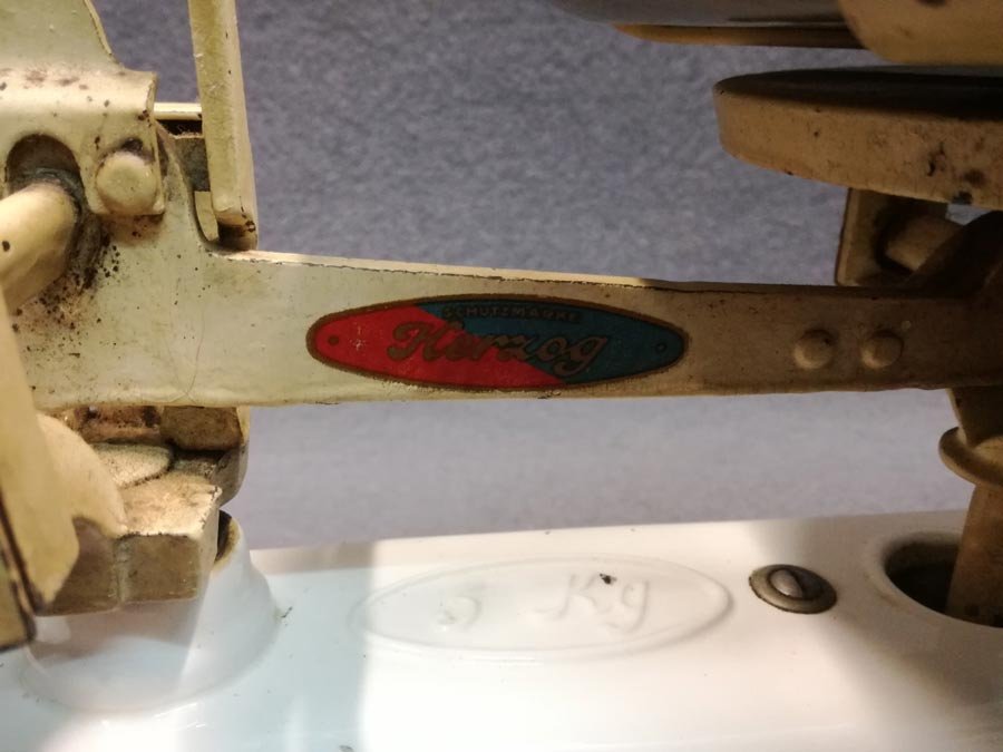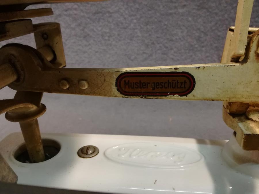 Küchenwaage, Herzog, blau Kästchenmuster um 1900-1920