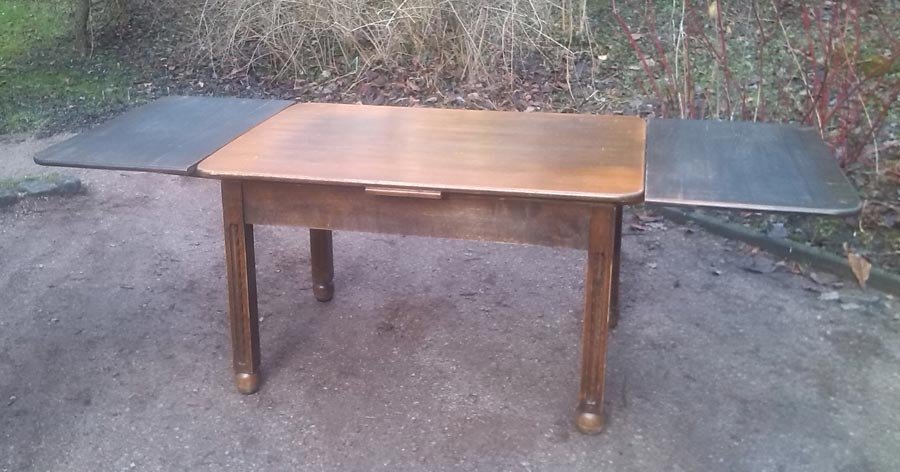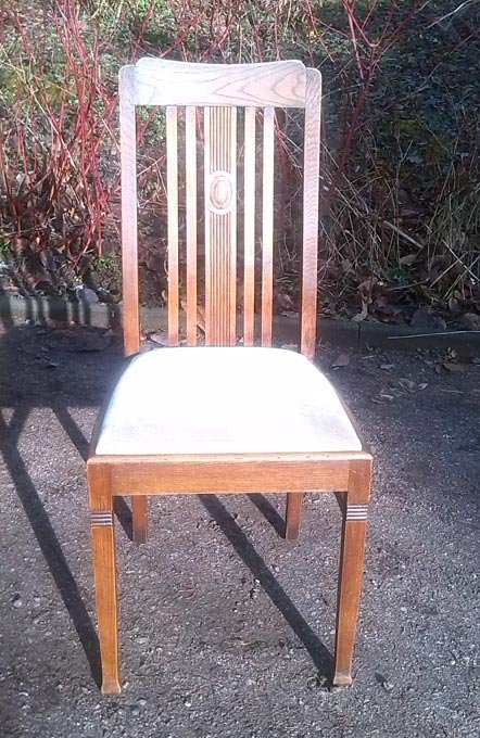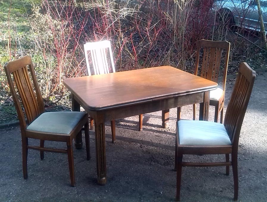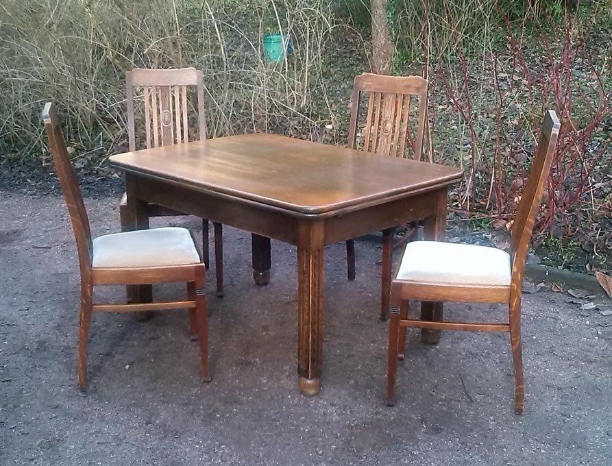 Tisch und 4 Stühle um 1910, Eiche. Ausziehtisch.