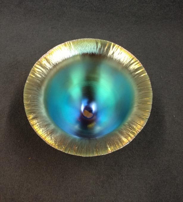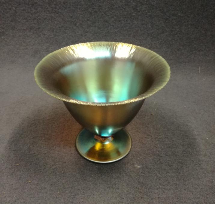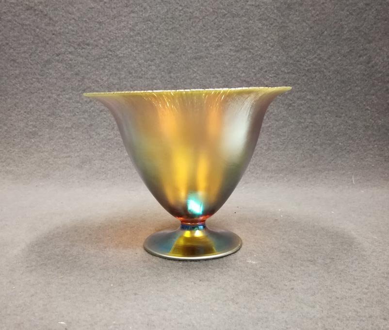 MYRA Glas: Von WMF entwickeltes, besonders feines, Metall bedampftes Glas. Nach 15 monatiger Entwicklungszeit ging Myra Glas 1926 in Serie. Je nach Lichteinfall irisiert es lebhaft in allen Farben des Regenbogens. Von diesem dünnen, empfindlichen Glas wurden nur hochwertige, dekorative Objekte hergestellt.