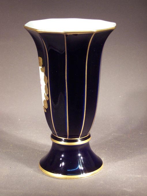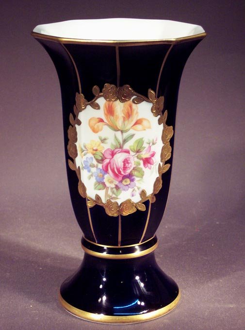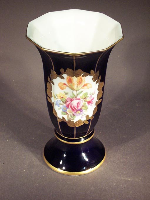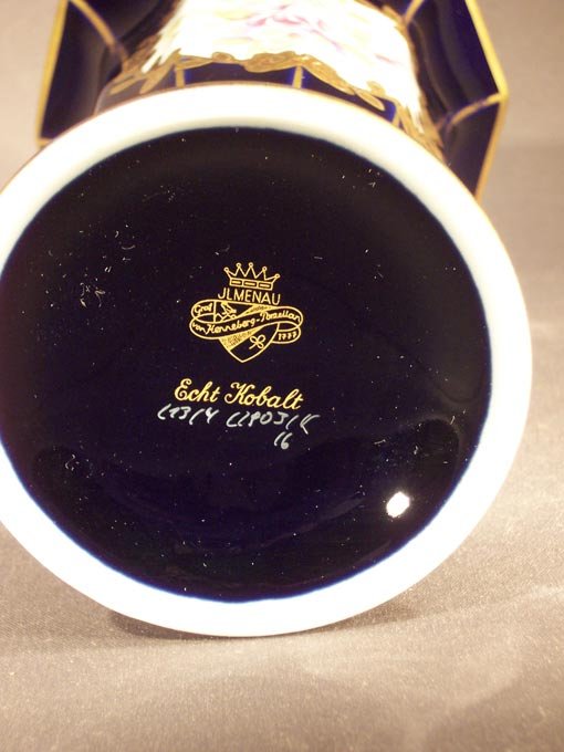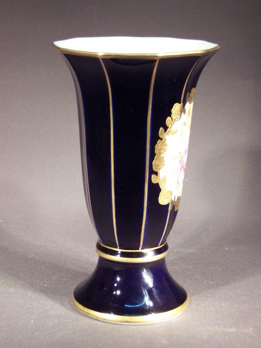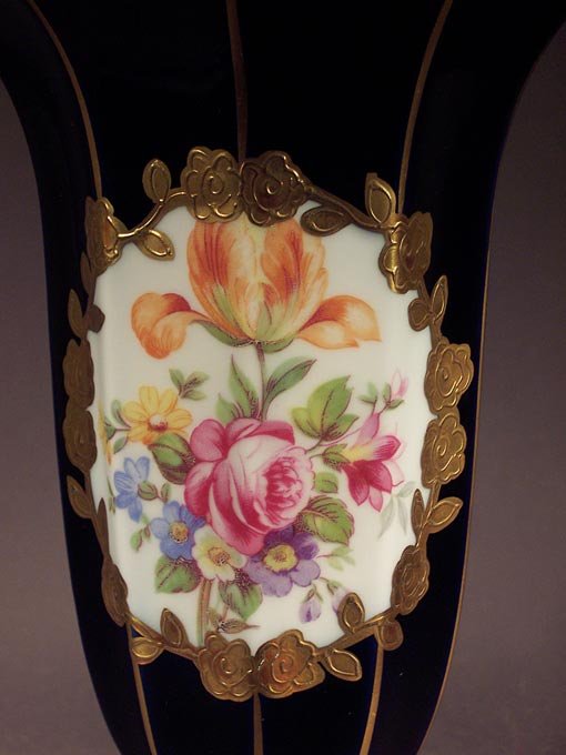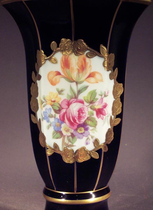 Vase Kobaltblau mit aufwändigenm Blumenbukett.  Thüringen Illmenau.