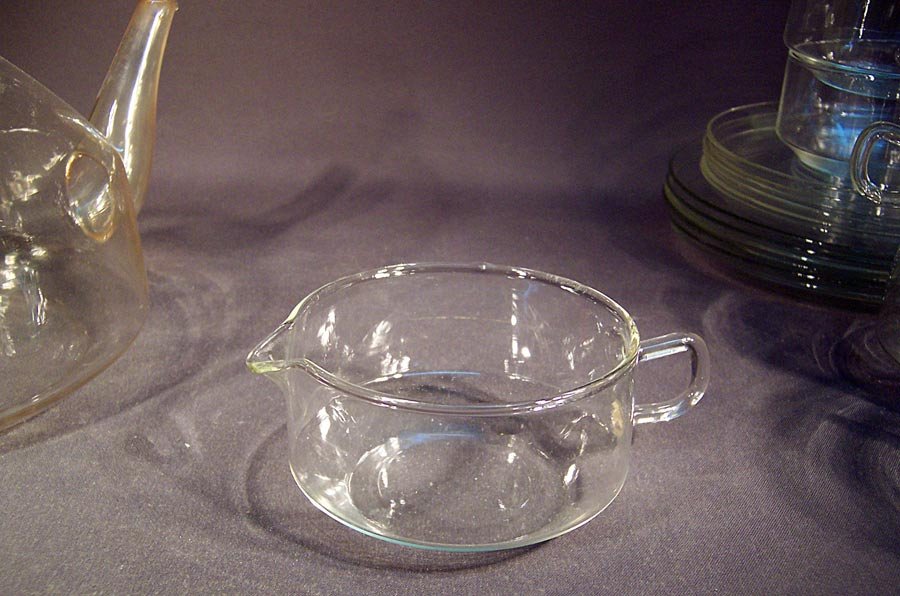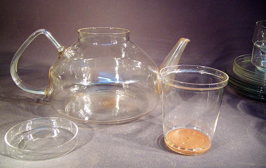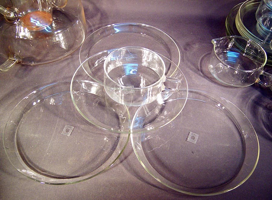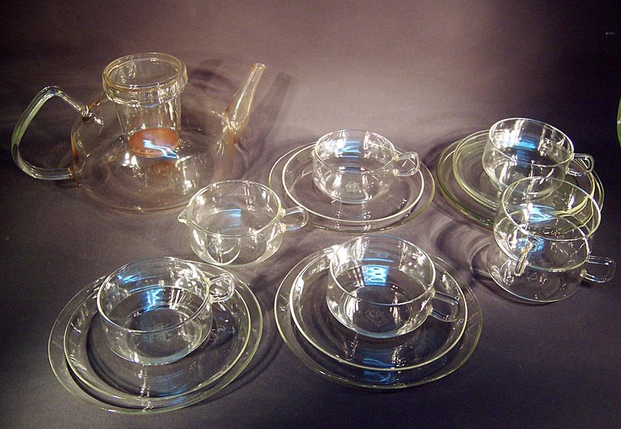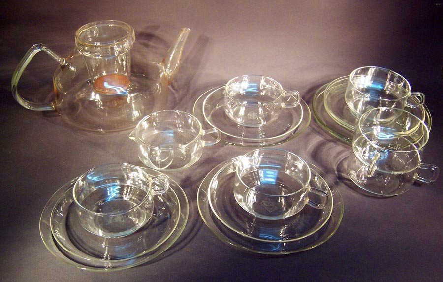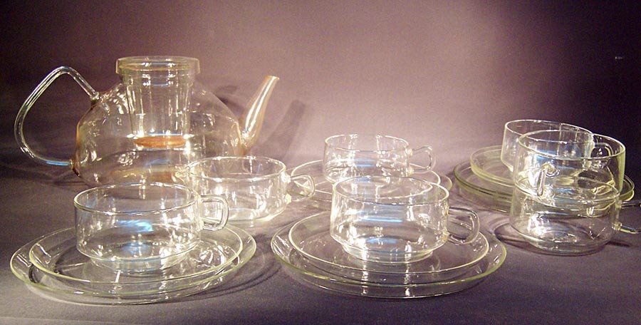 Teservice für 6 Personen. Entwurf: Ilse Decho. JENAer Glas bzw. Saale Glas.