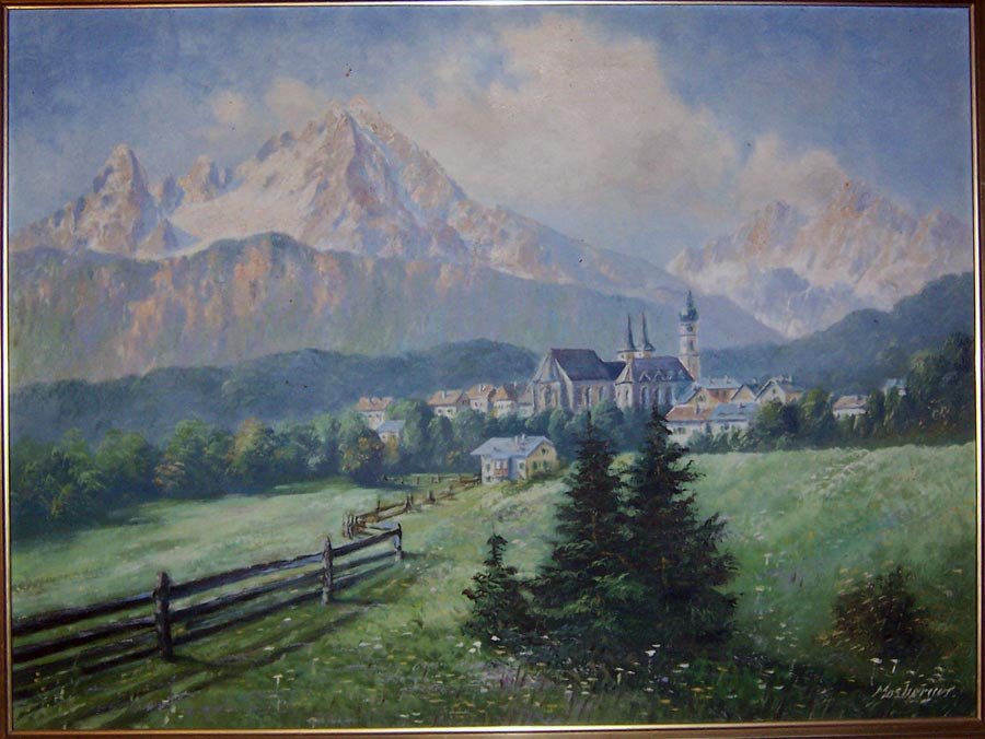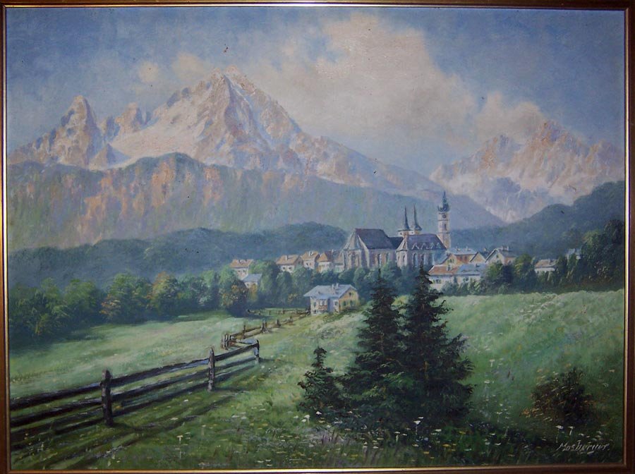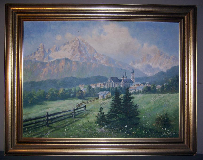 Mosberger, Berglandschaft mit Dorf, Öl/Lwd.