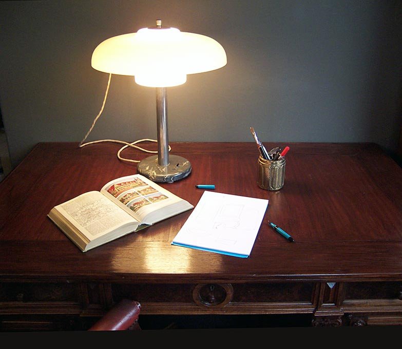 ART DECO große Schreibtischlampe m.Glasschirm H 52 cm