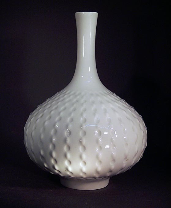Enghalsvase oder Kugelvase. Weises Porzellan mit Relief.