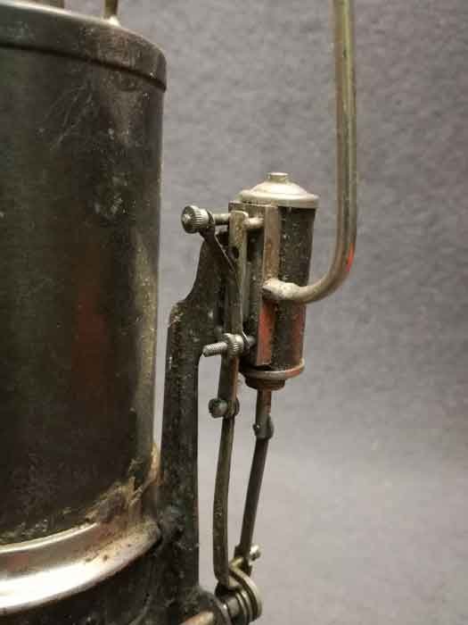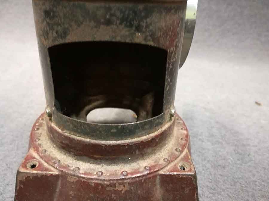 Ungereinigter Fundzustand. Zustand siehe Fotos. Brenner fehlt. Arbeitszylinder und Ventilsteuerung, Schwungrad bewegen sich und scheinen intakt. Kessel sieht unbeschädigt aus.