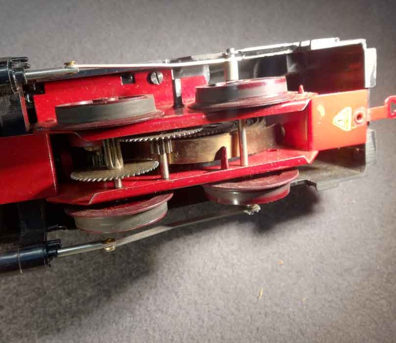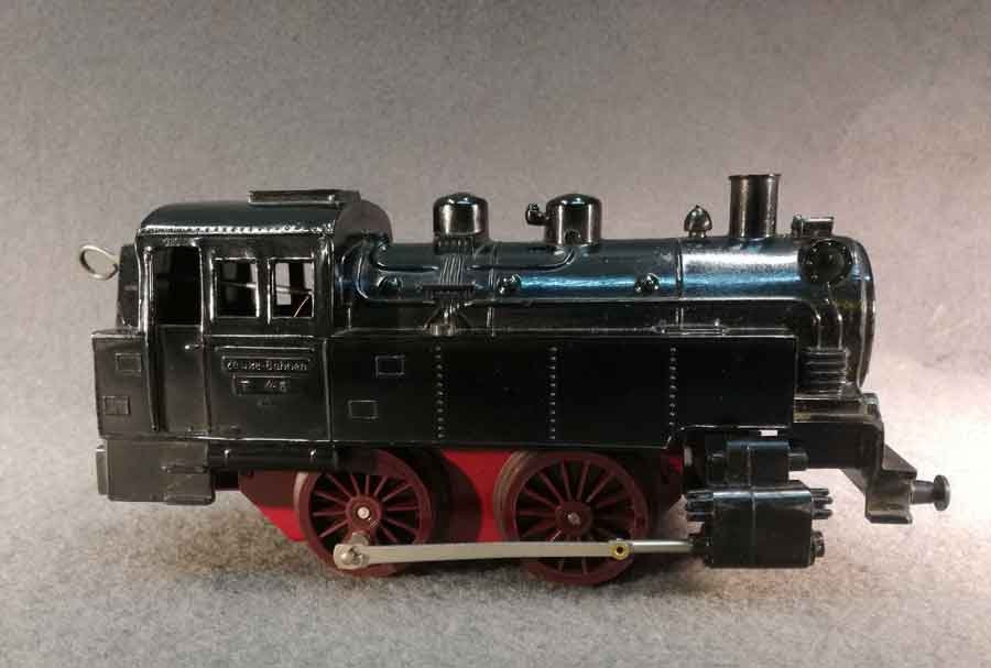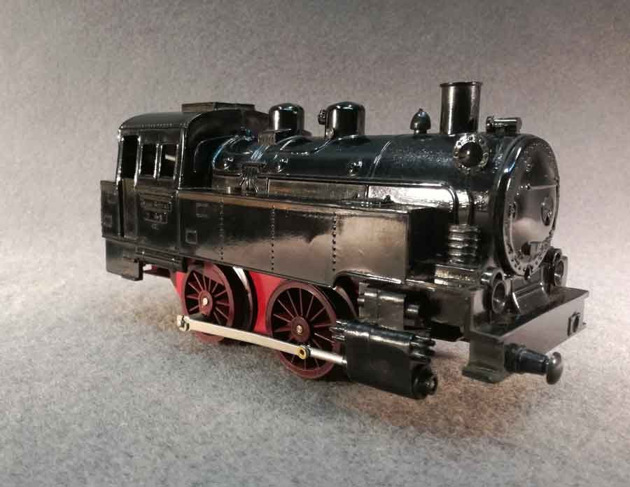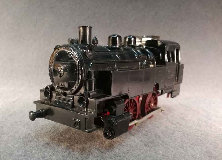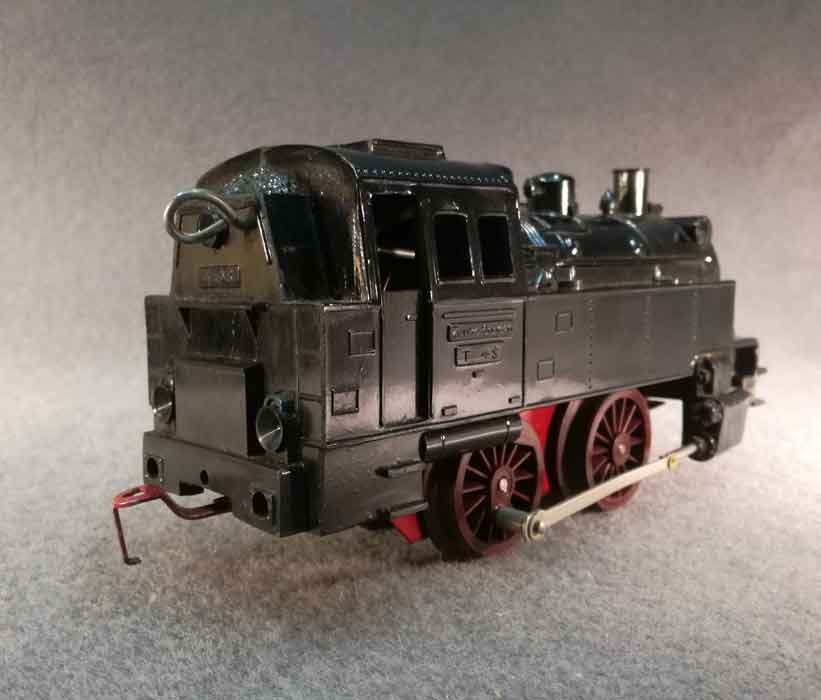 Lok T48 Spur 0 von Zeuke Bahnen. Bakelitgehäuse, Räder Kunststoff, Mechanik/Fahrwerk Metall.