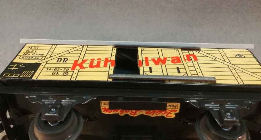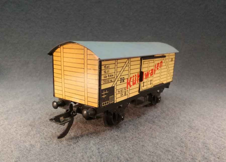 Zeuke, Spur 0, Kühlwagen. Zwei bewegliche Schiebetüren.