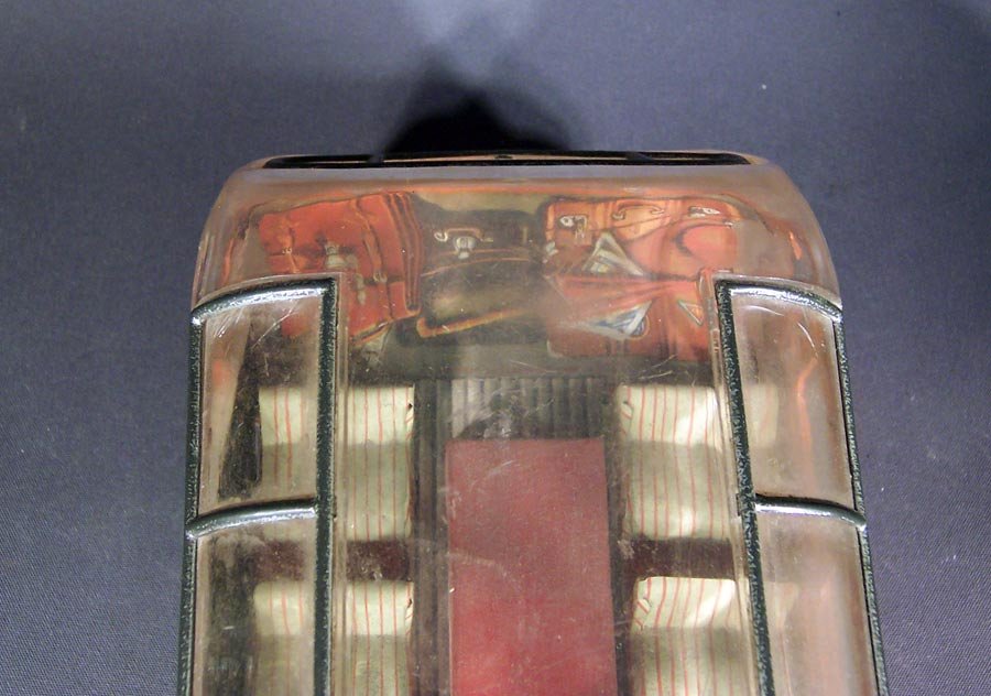 Der Aufzugmechanismus funktioniert. Die Feder spannt sich und die Räder drehen sich. Das wird über die zwei Hebel am Heck ausgelöst.