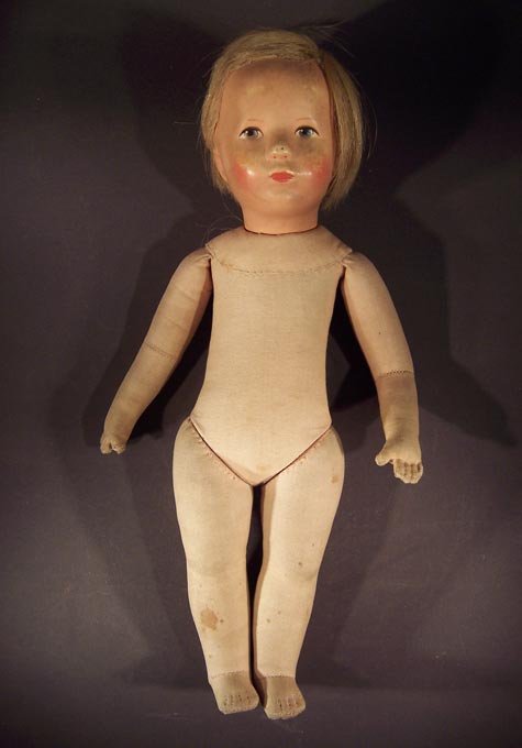 Alte Käthe Kruse Puppe, ca 37 cm groß. Undeutliche Nummer am Fuß: ?3359? - 3399? - 3395??