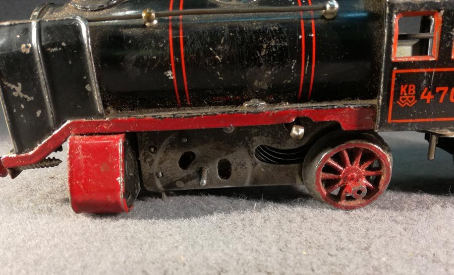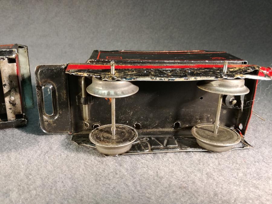 Karl Bub, Lok mit Tender. Defekt, Bastler. Ein Rad fehlt, weitere gelötet, Gestänge fehlt etc. Uhrwerk macht einen guten Eindruck, ist aber ungeprüft. Zustand siehe Fotos, Fundzustand, ungereinigt.