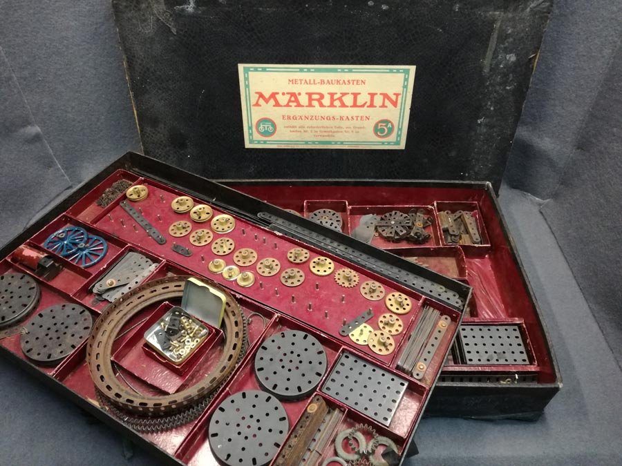 Märklin Metallbaukasten, Ergänzungskasten 5 a, zur Erweiterung des Grundkastens 5 zu Grundkasten 6. Großer Kasten doppelt.