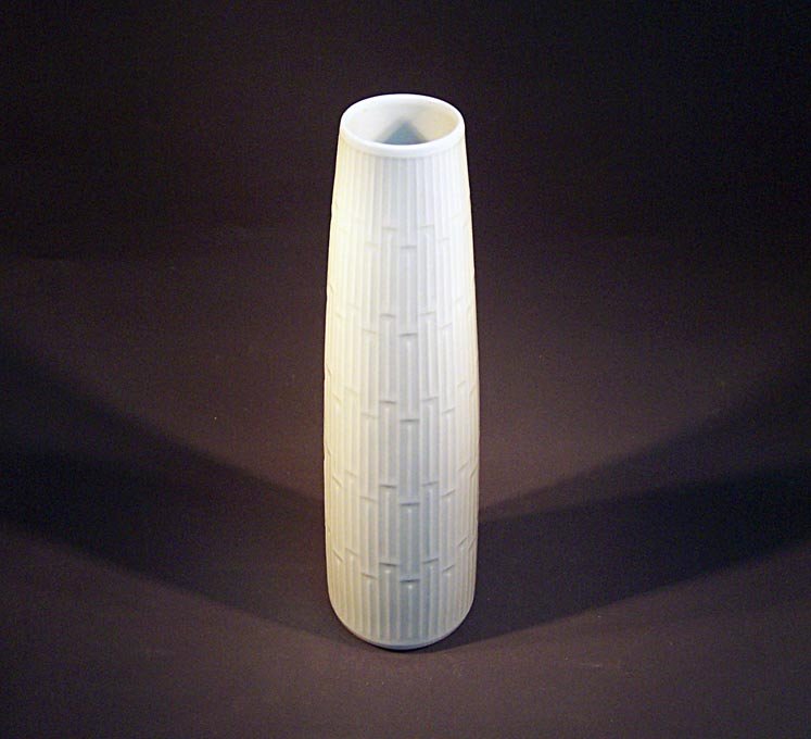 Zylindervase oder Stangenvase. Weises Porzellan mit Struktur- Relief.