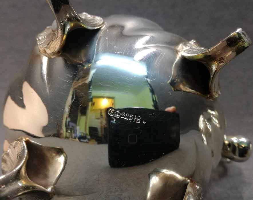 Gestempelt: "925" , Mond und Krone sowie Beizeichen "HB" ; die Zuckerdose zusätzlich mit "G.Schröter".
