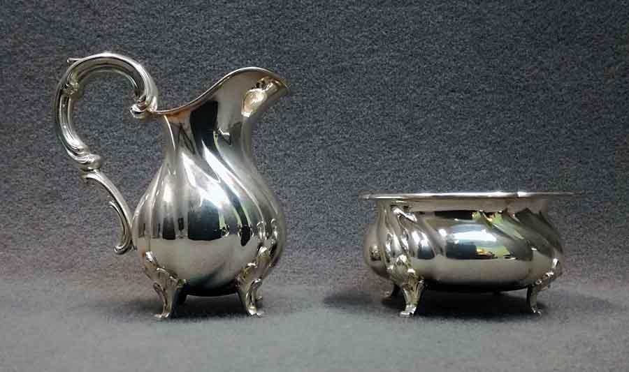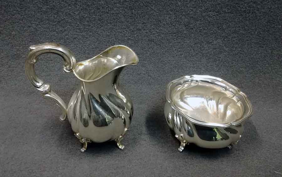 Silber 925er, Dresdner Hofmuster, Zuckerschale und Sahnekännchen.
