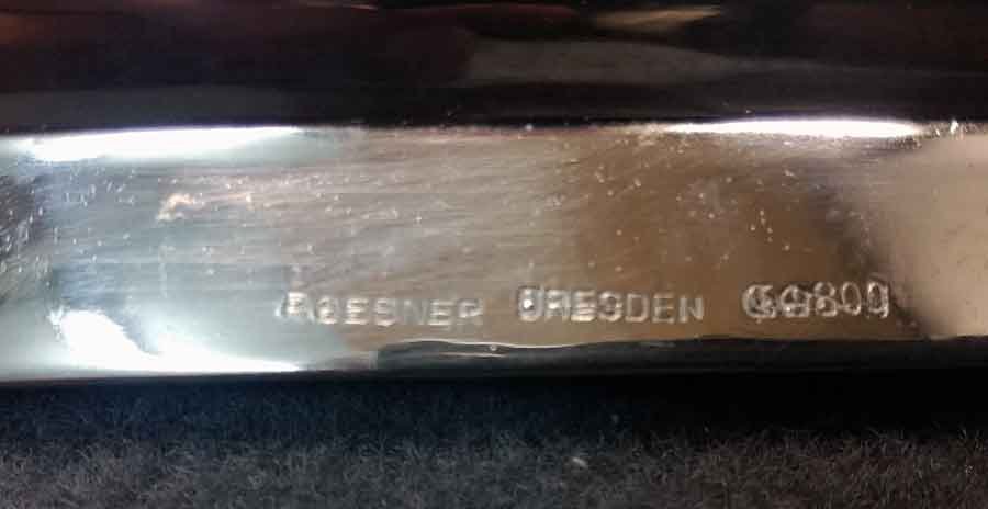 Gestempelt: "Mond", "Krone" und "800" (für 800 er Silber) sowie "Roesner Dresden"