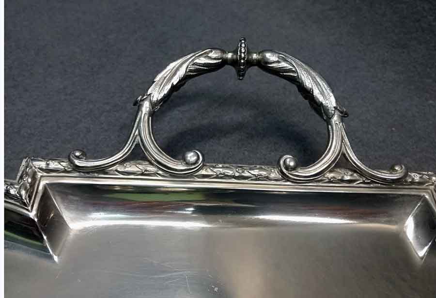 Tablett, 800 er Silber, 2000g, verziert mit Handhaben, Roesner Dresden