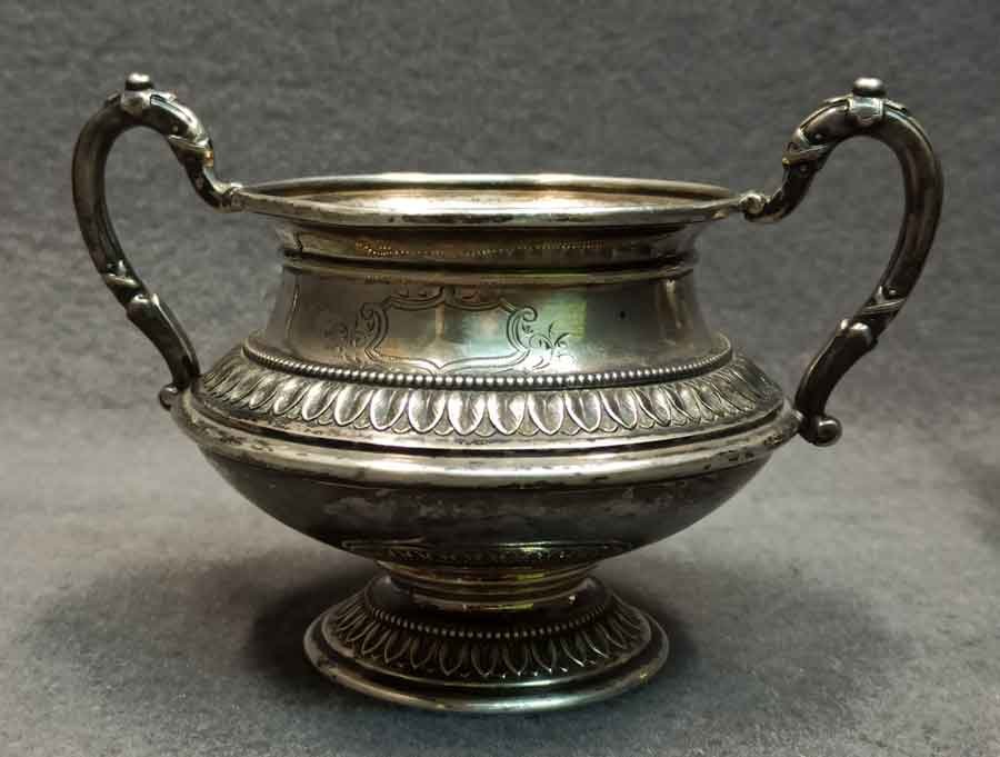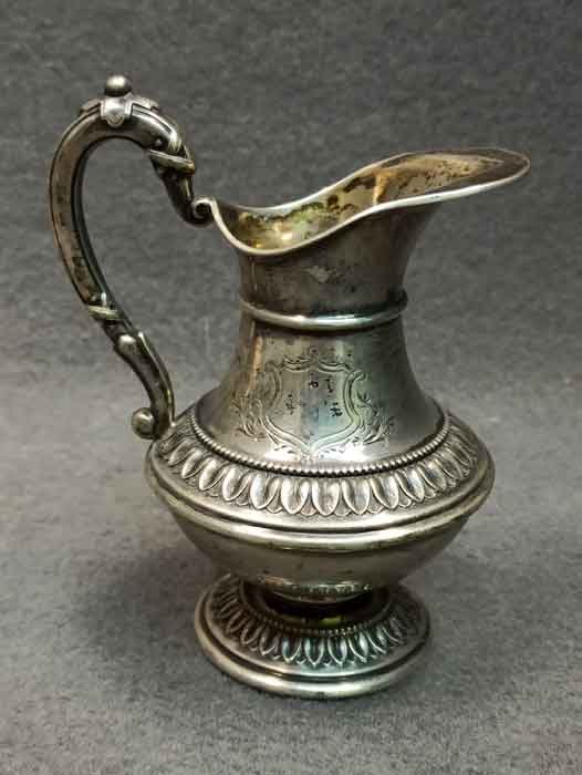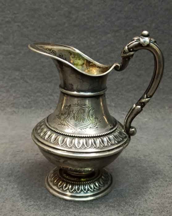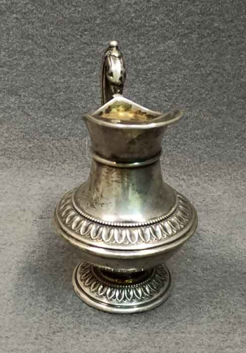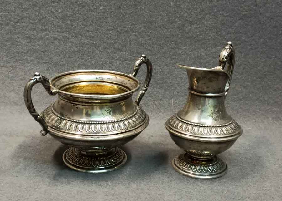 Silber, Zuckerschale und Milchkännchen, Wilkens 800 er Silber. Bauchige Form, auf Fuß und Wandung umlaufendem Perlband und Arkanthusblatt Dekor, reliefierte Henkel.